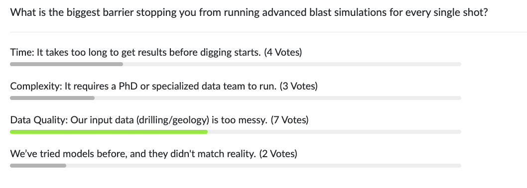 CEO Ravi Sahu presented a walkthrough of an AI + physics approach to blast‑movement modeling using your existing geology, drilling, and survey data to predict where ore and waste will land after the blast—fast enough to guide digging and plant feed decisions. We covered how to build a 3D post‑blast block model that reallocates ore and waste at high resolution, how the model learns site‑specific parameters (burden, timing, rock characteristics) and updates with new surveys, how an AI + physics engine captures muckpile flow more accurately than traditional estimates, how to produce near‑real‑time ore–waste boundary maps for mark‑out and selective digging, how to run simple “what‑if” tests on timing and burden to reduce dilution before you fire, and how to plug in standard inputs (geology, drill data, pre/post‑blast surveys) and validate predictions with feedback loops. People such as drill & blast engineers and supervisors, mine geologists and grade control teams, and short‑range planners and processing leads attended.